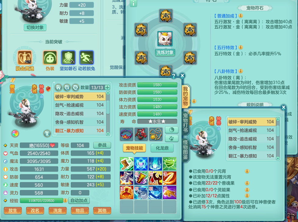 jn8532 【潜龙在渊】 今年勇 99 万兽 4位靓号 双飞坐骑 满星穹 3.0化龙鼎毕业 月卡146天 2龙1内 2内神 2宠物皮肤 8觉醒 8个真6字 15+满果子 2980邮箱