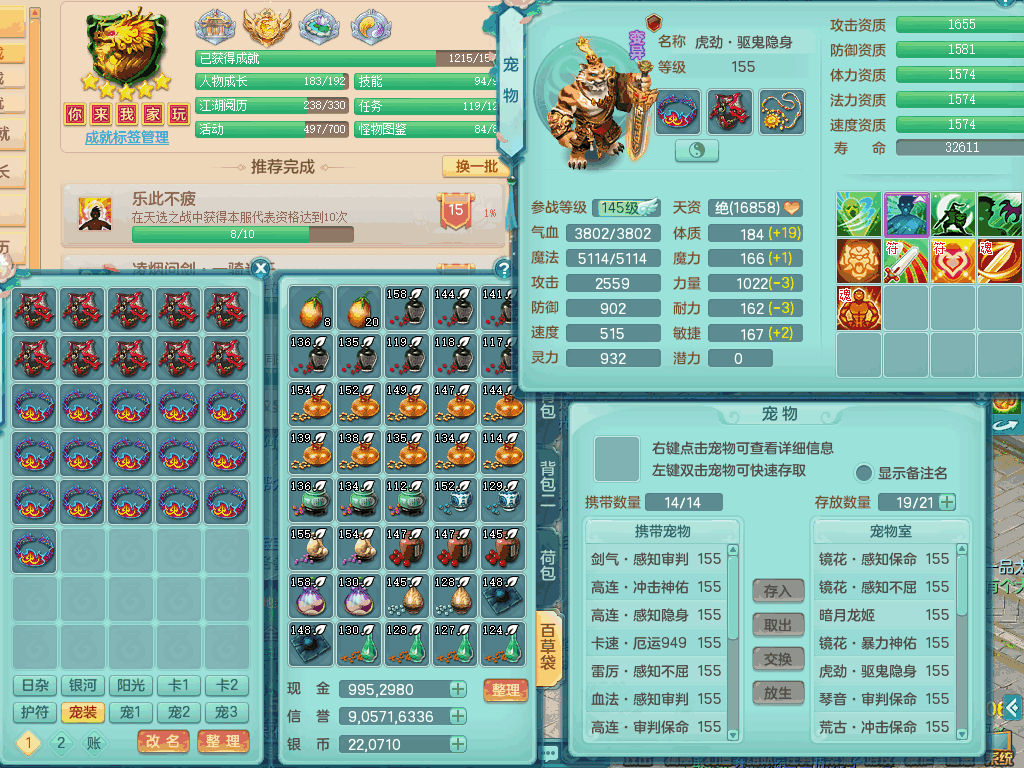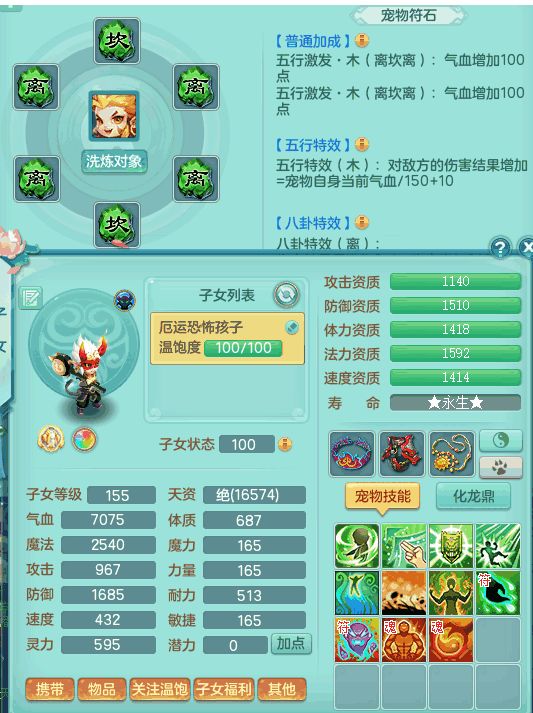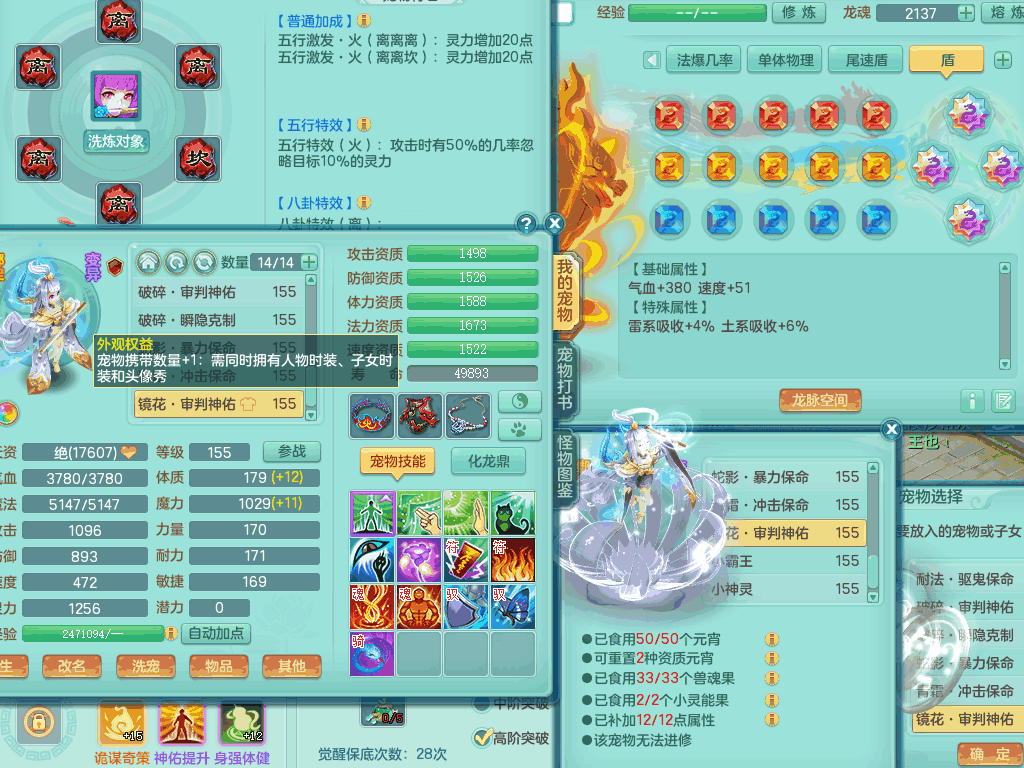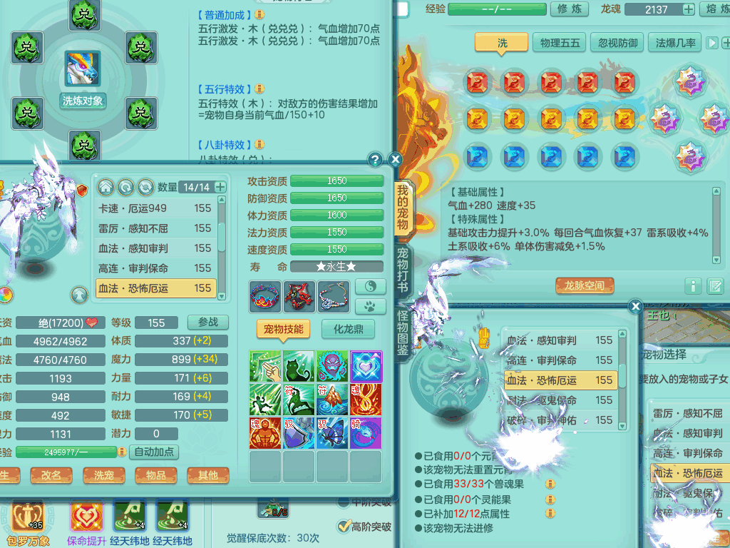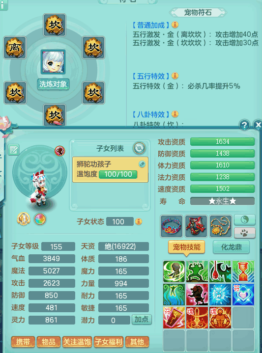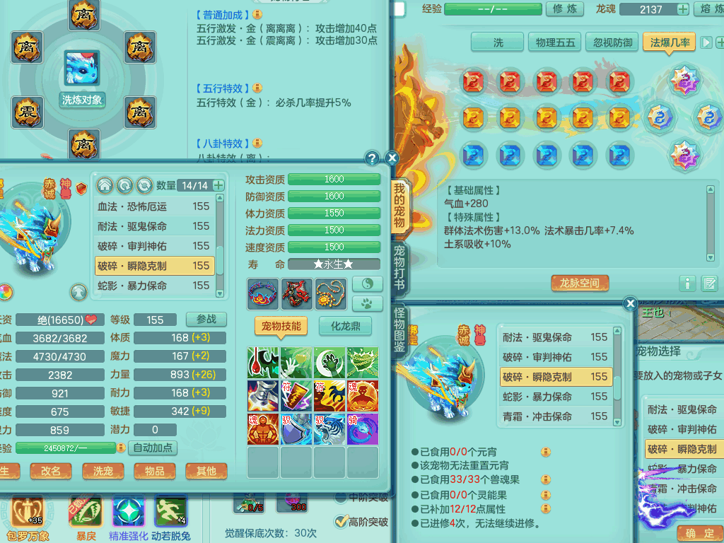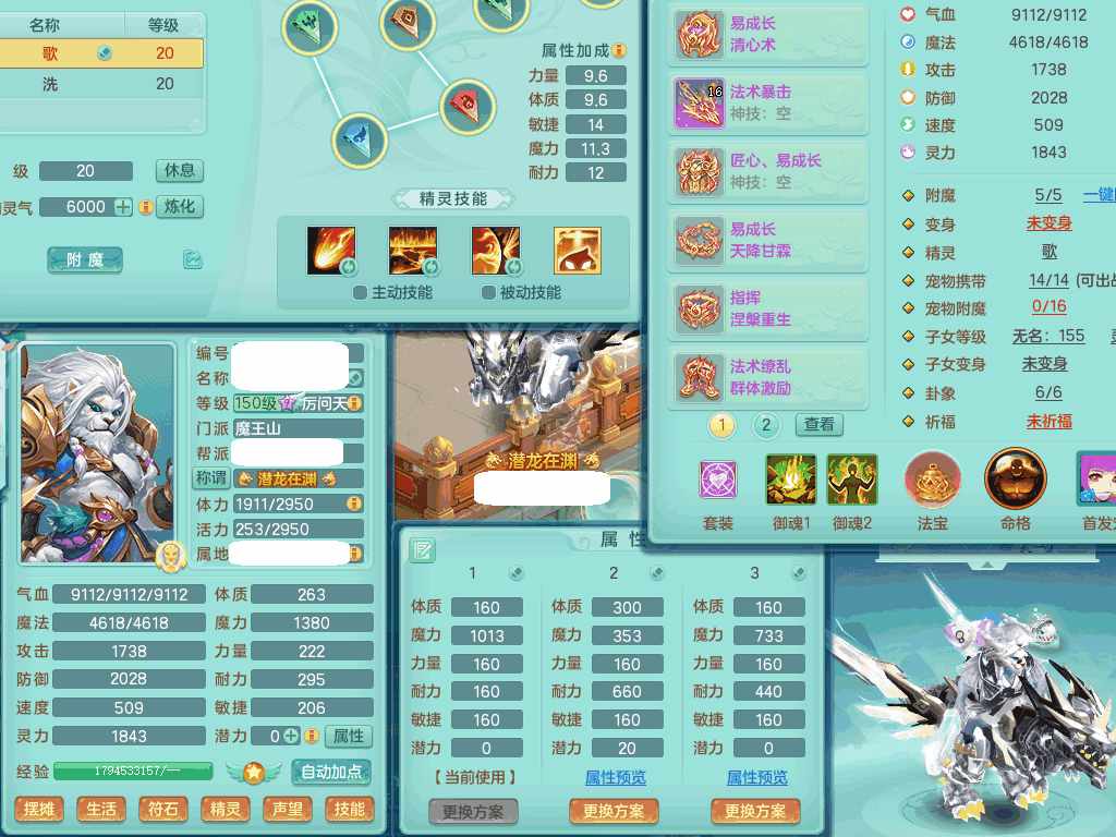 lt8546 【潜龙在渊】浪淘沙159男魔王,精灵歌,9龙4内胆神,1破镜,【11只觉醒,已潜龙】,5宠皮,4位靓号不含4,4只六技能镜花灵,2只6技能龙姬,3特殊(善恶,月光,锤子),18段匠心易单加衣服 ,法术缭乱群体激励单加51鞋子,5.5基础鼎+70攻、280血,13个格子,8个纯六字,6个五字,24只满果子,宠排在榜,经验修炼成就在榜,永久称谓,冰晶庭院,5个孩子,11个坐骑,完美染色原始暴龙+西瓜冰武器皮肤。 163邮箱