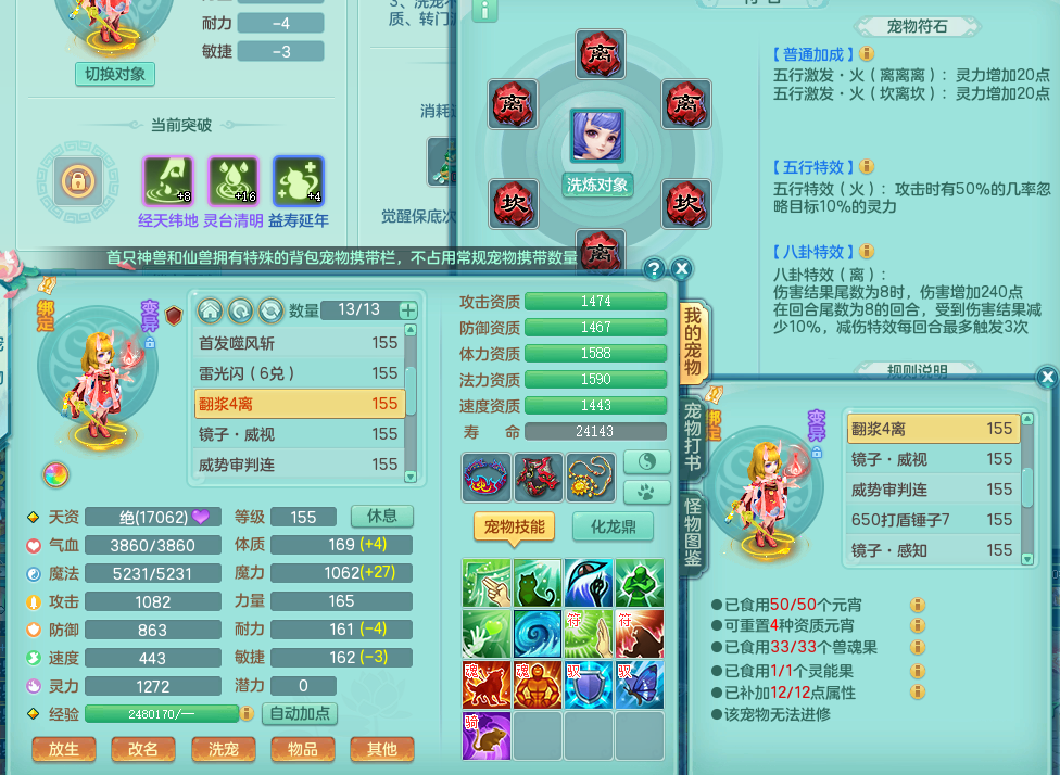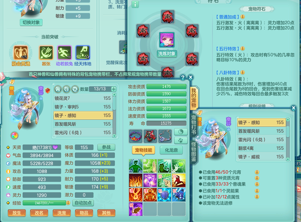 tx8585 (准潜龙在渊)天下无双 159 男无量 龙坐骑 精灵歌 满星穹 5.5化龙鼎毕业 月卡126天 1内神,9觉醒 7个真六字,5只6技能镜花灵(可6镜子),18+满果子,4特殊(雷光,翻浆,噬风斩,荒古和雷利未打),潜龙只差符石1大2小条防御 2980邮箱
