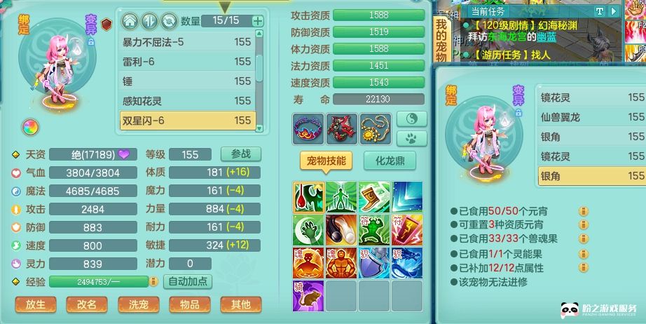 fc8639 【潜龙在渊】 风驰电掣 159 天宫 仙兽翼龙3条/有内丹龙/有内丹神/精灵技能(主动,被动)/满果子宝宝17个/2980邮箱(不支持单独换绑)/邮箱不可单独换绑/仙龙徽章3级 绝版4位靓号,6.0基础,华龙鼎毕业(封锁,五雷,法术缭乱都有)可玩全门派,4宠皮