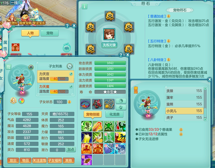 tx8728 天下无双 159 万兽 4位靓号 双飞坐骑 精灵歌 满星穹 化龙鼎 1龙无内 1内神 1宠物皮肤 特殊(藕断、飞花) 4觉醒 2个真6字 7+满果子 163邮箱