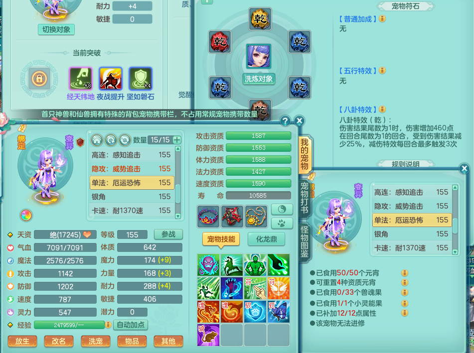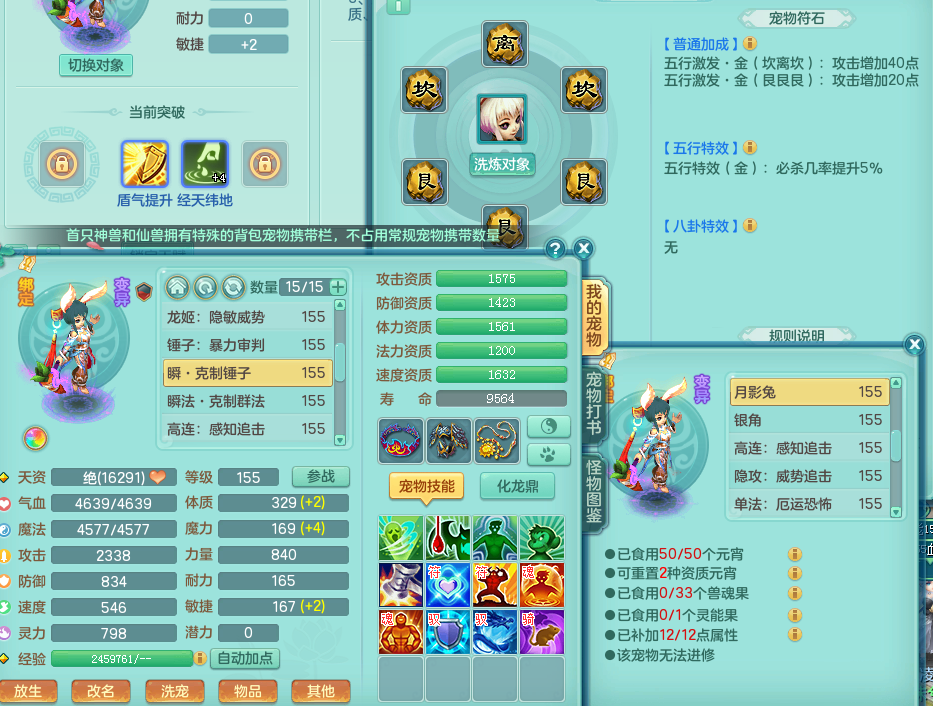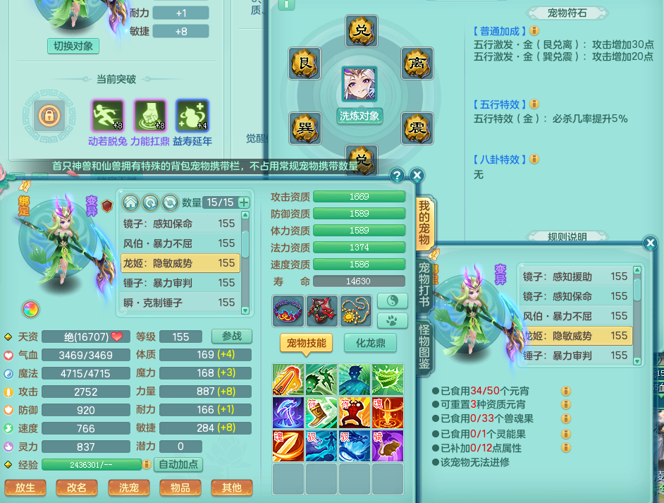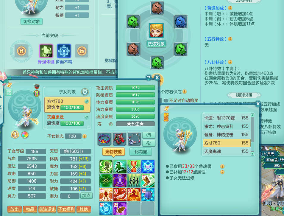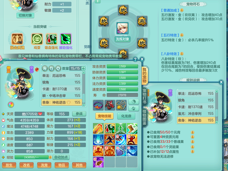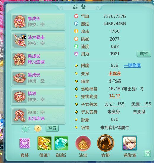 tx8753 天下无双 159 装备毕业龙宫,单加易271项链,单加272满灵神佑项链,迅捷破血双红鞋子,单加Y慈航鞋子,单加Y笑里鞋子,单加Y群体守备头,陆地双人坐骑,精灵舞,满星穹 5.5+70化龙鼎,1内龙,1内神,3觉醒,2镜花,2特殊(舍身、禁锢)加上孩子14个满果子(3孩子:方寸、天魔、龙宫),很多单加双红装备,2套符石,全门派可玩,小伙伴解锁169个,同账号159FC+153封WZ,2980邮箱304天换绑