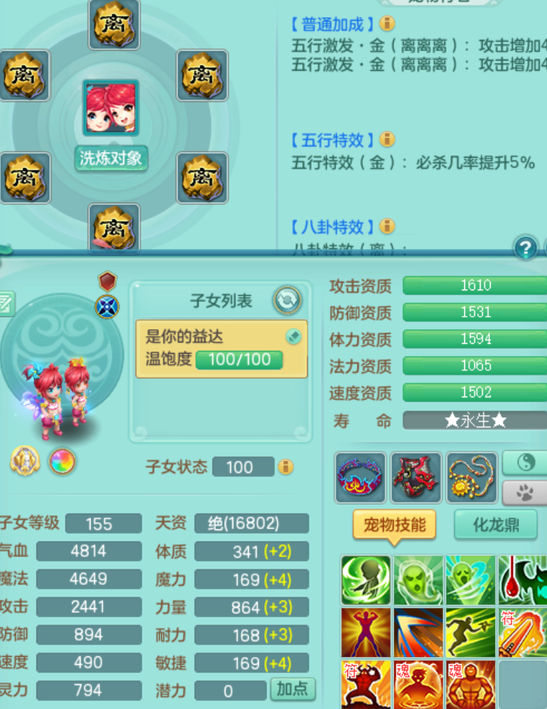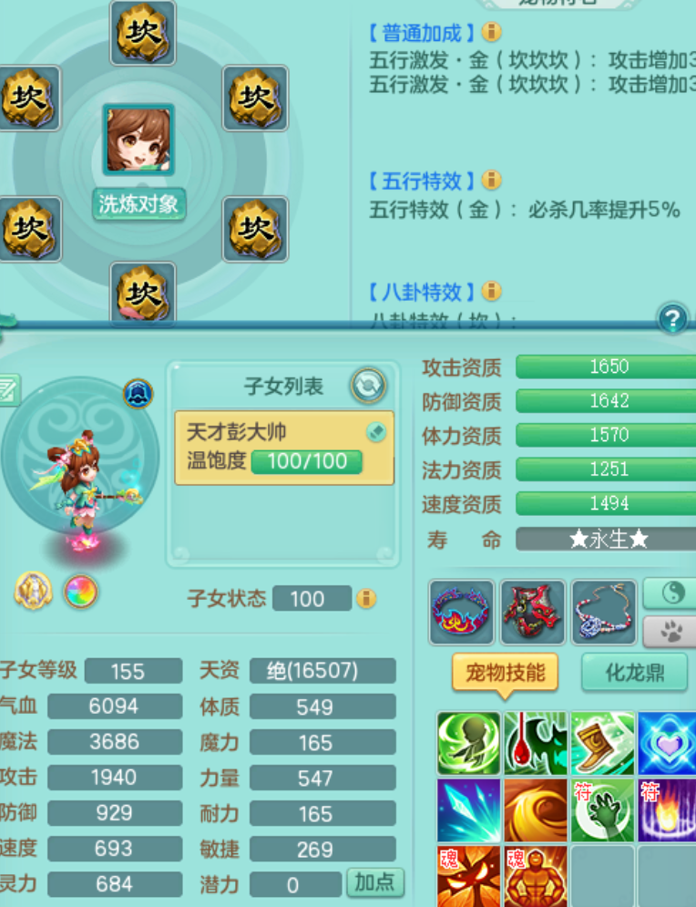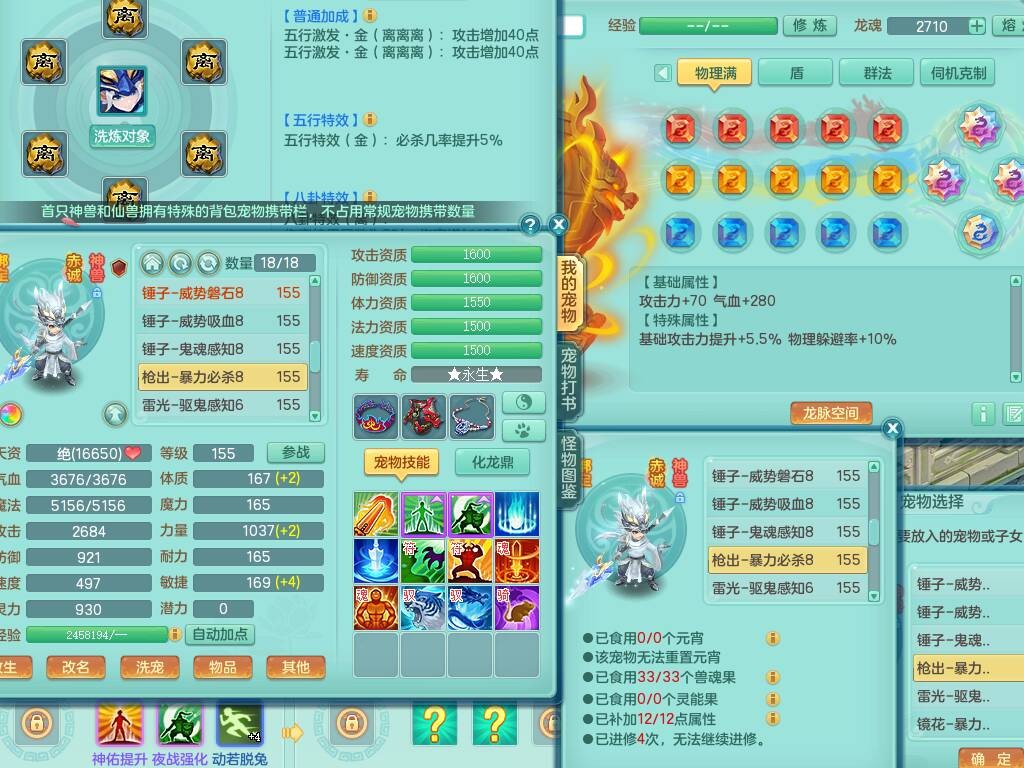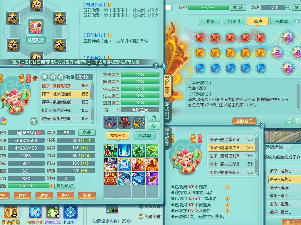 sn8757 【潜龙在渊】 少年游159女普陀,精灵舞,8龙1龙皮,4内胆神,2破镜,【13只觉醒,已潜龙】,4位靓号不含4,3宠皮,5只六技能镜花灵,2特殊(雷光,怒破),愤怒五特,5.5基础鼎+70攻+280血,15个格子,26个纯六字,27只满果子,宠排经验修炼成就都前排,永久称谓,9个坐骑,暴龙泰坦+西瓜冰,冰晶庭院,带134天月卡,3.2万金币,216万神武币。带3个150奶粉。 2980邮箱