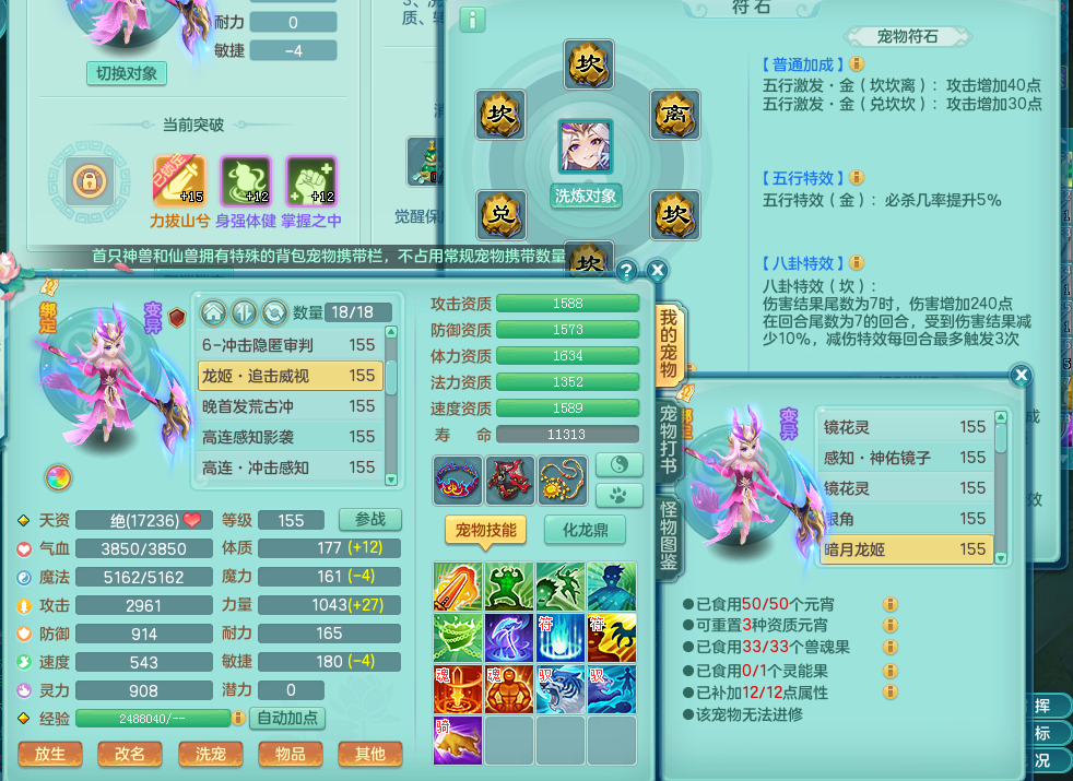 hh8773 花好月圆 159 方寸 4位靓号 双飞坐骑 精灵舞 满星穹 5.5化龙鼎 4内龙 3内神 7宠物皮肤 4特殊(影袭、夺命窃魂、怒破九霄、荒古破击) 7觉醒 7个真6字 30+满果子 QQ邮箱