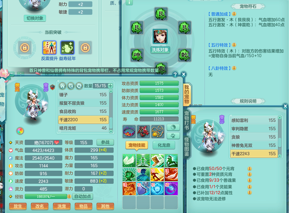 hh8777 花好月圆 159 无量 4位靓号 双飞坐骑 精灵悟 满星穹 5.5化龙鼎 月卡151天 特殊(双星、)3内龙 2内神 2宠物皮肤 7觉醒 7个真6字 14+满果子 2980邮箱