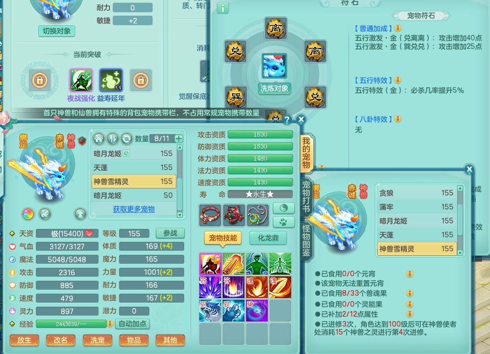 tx8801 天下无双 157 万兽 单人坐骑 4.5化龙鼎 bb还不错 带一个156+奶粉 163邮箱