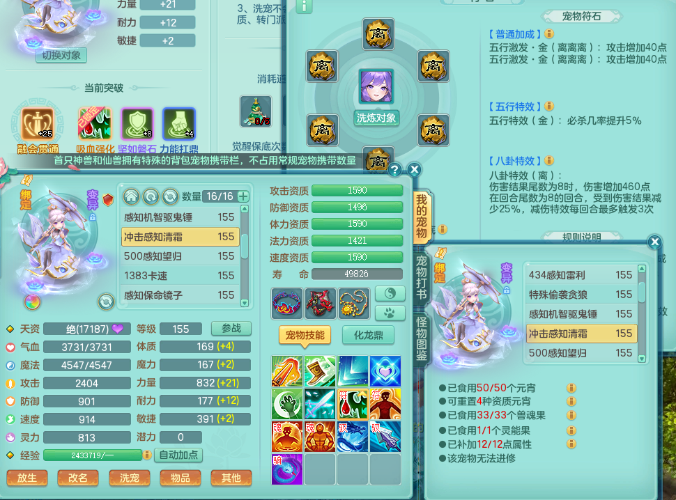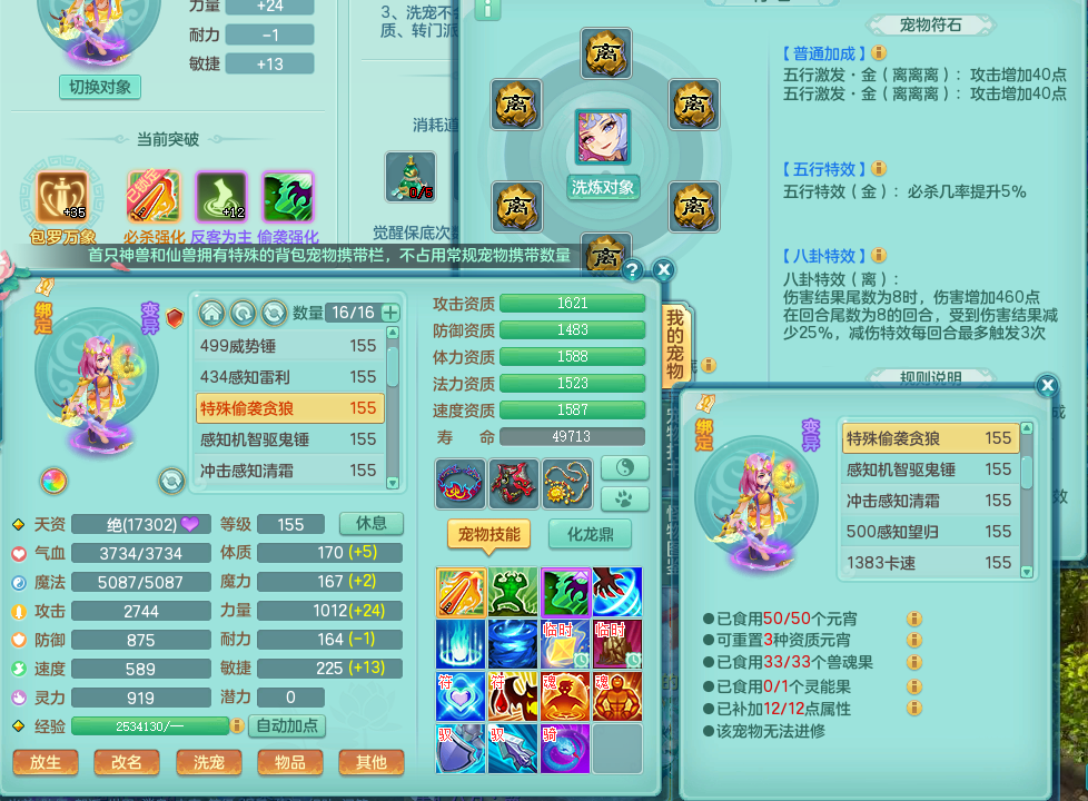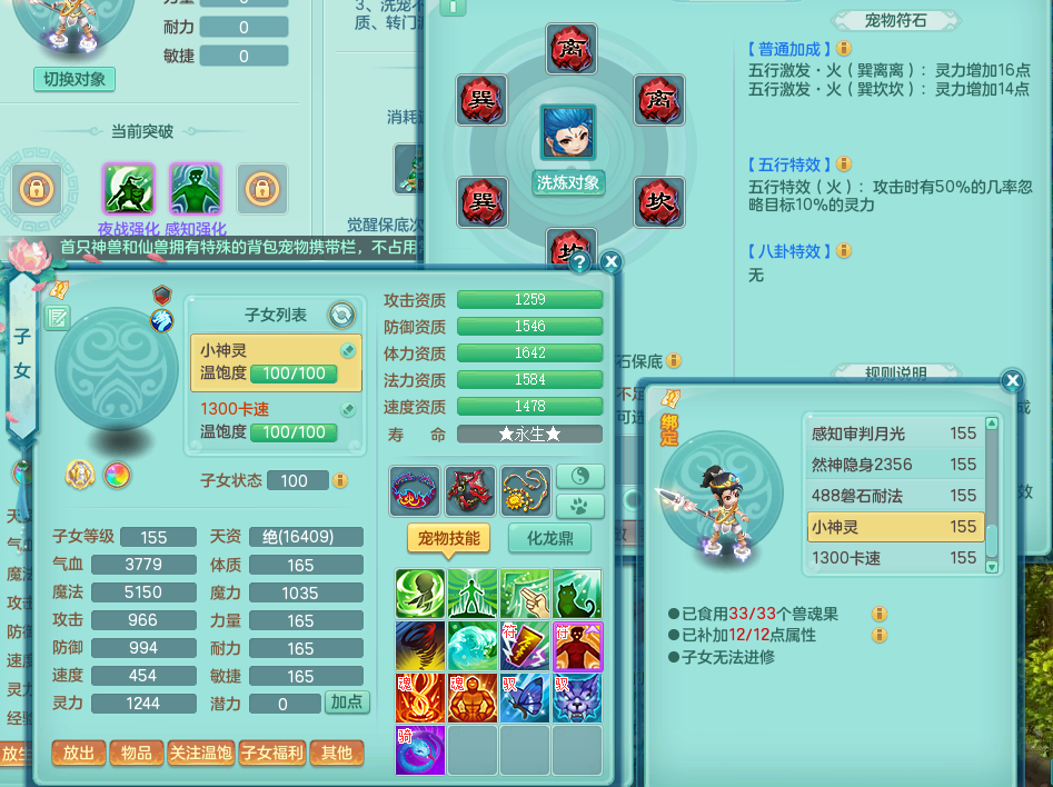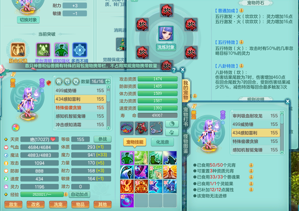 zs8830 【潜龙在渊】 159 女 五庄 暴龙坐骑 精灵舞 满星穹 5.5化龙鼎毕业 月卡160天 1内龙 2内神 5宠物皮肤 特殊(月光、生命、清霜、夺命、噬风斩、雷利、战争、登云 )9觉醒 10个真6字 26+满果子 QQ邮箱