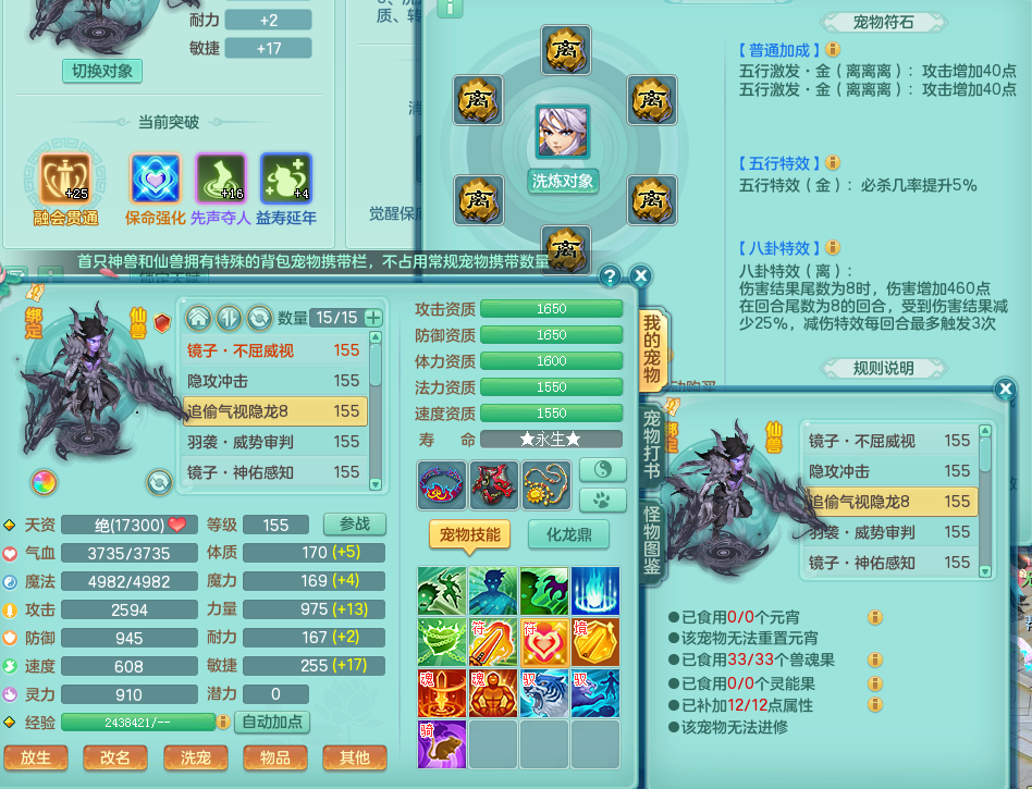 zs8838 醉生梦死 159 天魔 龙皮破镜必杀,1内丹神,4字靓号,6个皮肤,10个完美染色坐骑,3个6字,综合10个满果子,3个镜花灵,全身单价E装备,满攻E单加武器,满攻E4三加武器,2特殊(羽袭、烈焰焚天),潜龙宠装碎片已满,5.0化龙 4级龙纹几套 仓库两个大灵能果 号上还有1w多金币 QQ邮箱