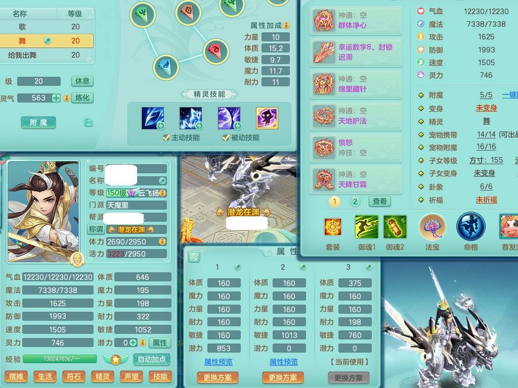 jt8881 【潜龙在渊】九天揽月159男天魔,精灵歌+舞,7龙1龙皮,4内胆神,【7只觉醒,已潜龙】,4位靓号不含4,4宠皮,1只六技能龙姬,5只六技能镜花灵,1特殊(止戈),三红幸运8封锁迟滞武器,愤怒五特,5.5基础鼎+70攻+280血,9个纯六字,1个五字,综合20只满果子,宠排在榜,8个坐骑,原始暴龙泰坦+西瓜冰,带87天月卡。➕159男盘丝,精灵舞,1内胆神,1只觉醒,2只六技能镜花灵,5.0基础鼎,2个双人坐骑。 qq邮箱